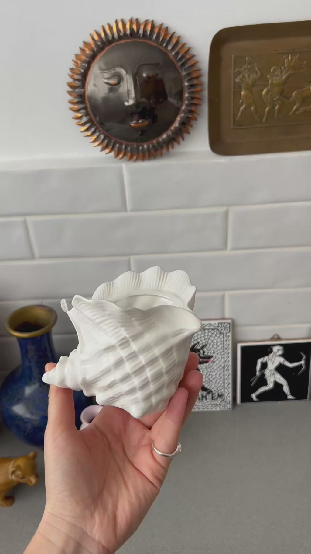 בגימור לבן עם טקסטורה עשירה המדמה צדף אמיתי עם פרטים יפים