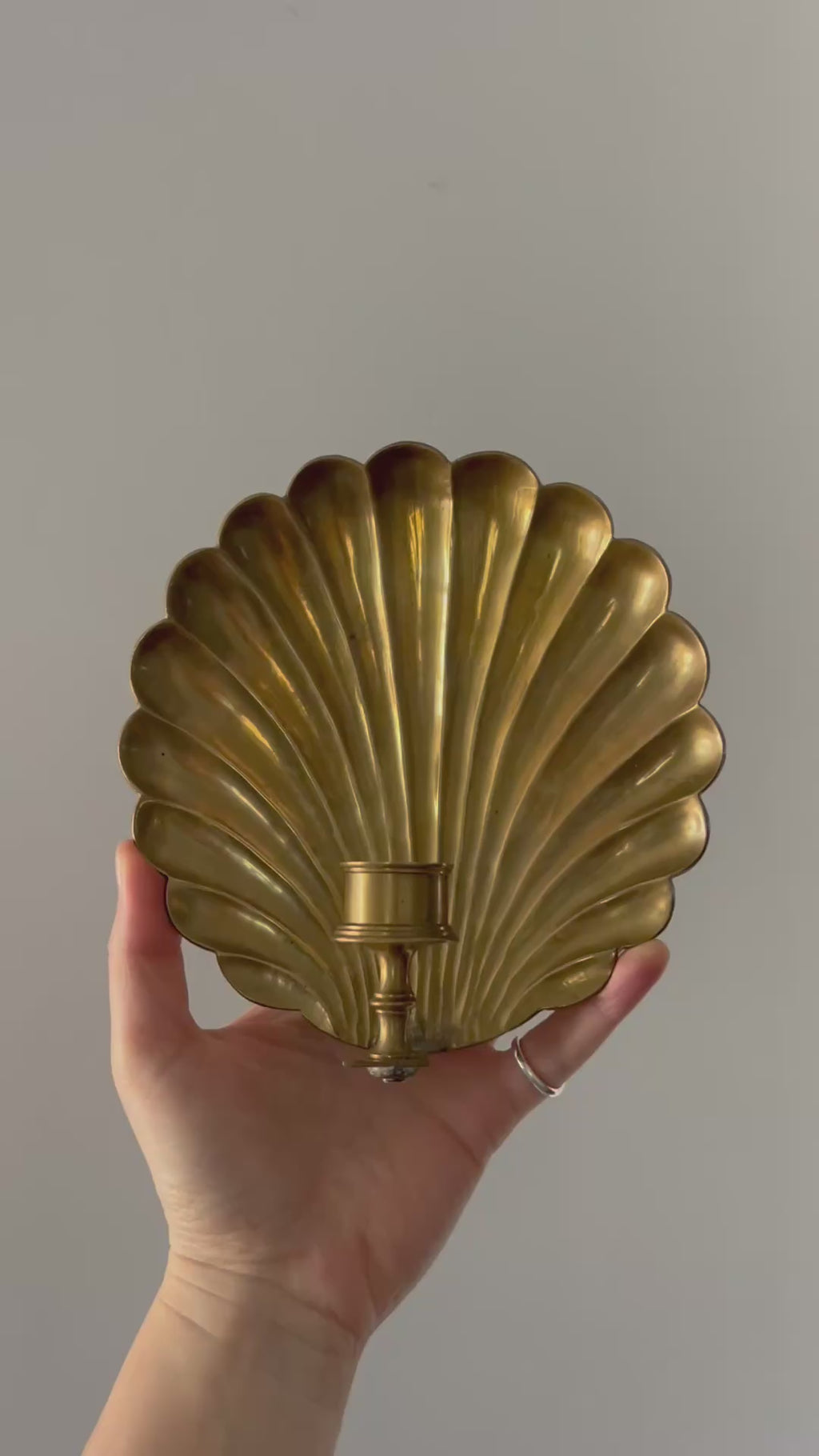 פמוט קיר עתיק ונדיר עשוי פליז בצורת צדפה שנוצר בצרפת סביב שנת 1930